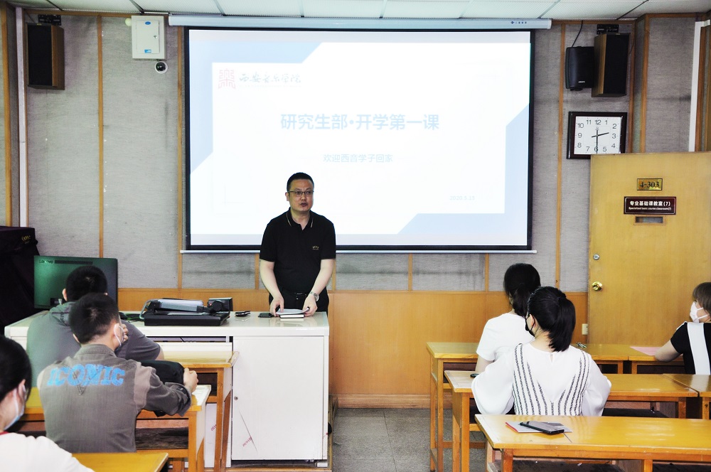 2020年5月15日下午,研究生部在四号教学楼303教室组织全体返校研究生开展了“开学第一课”主题班会活动,研究生部全体教师参会。