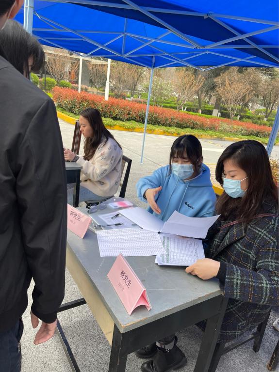 为了了解各年级、各班返校情况,同时也更好地服务于学生,研究生部成立报道处,在学校北门门口统计报到人数,收健康监测台帐,使同学们一进校门就感受到母校的温度。
