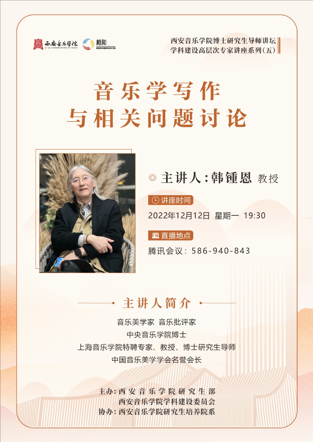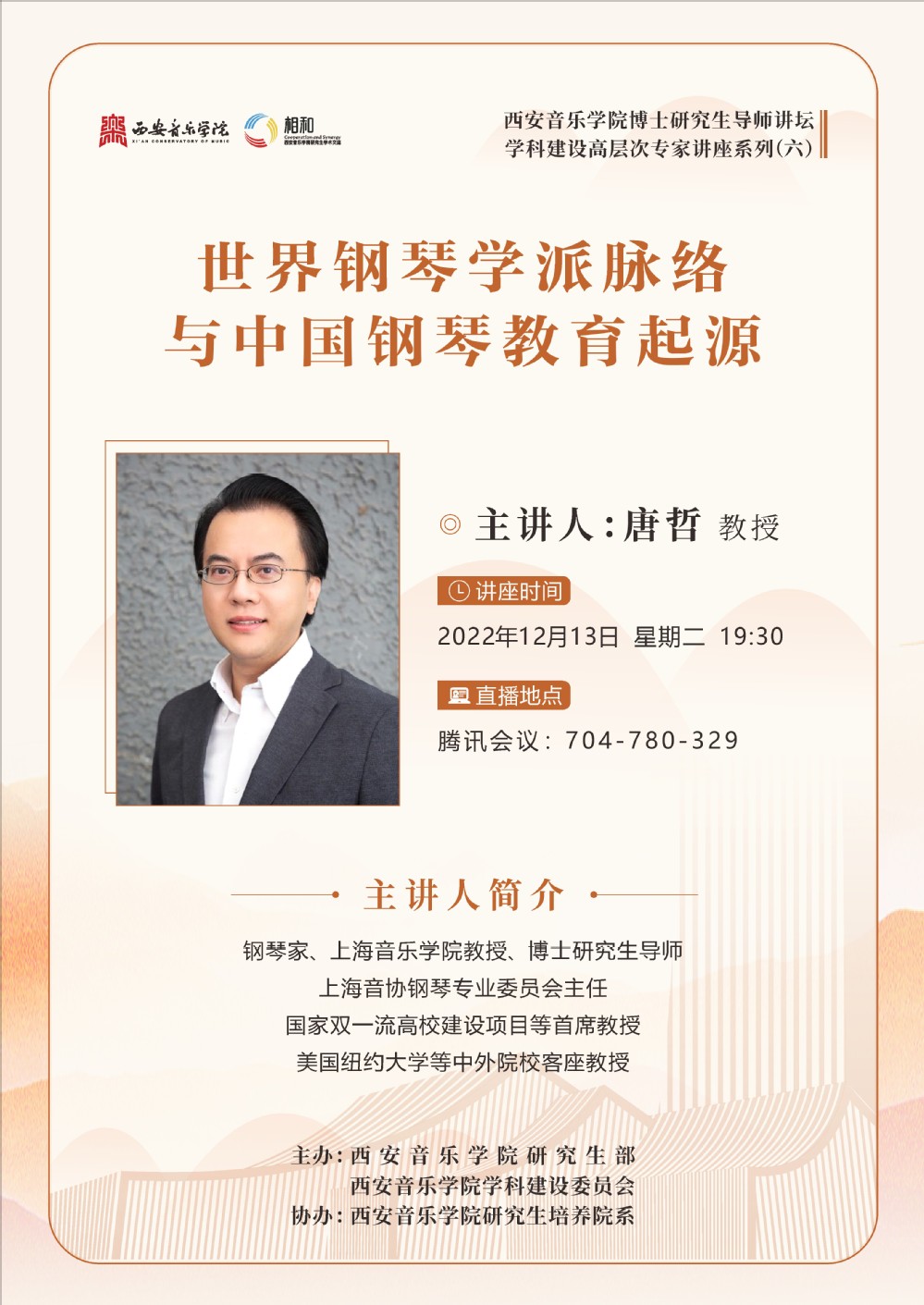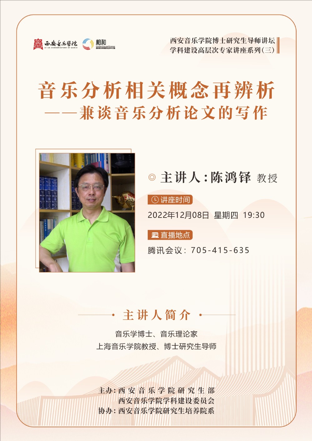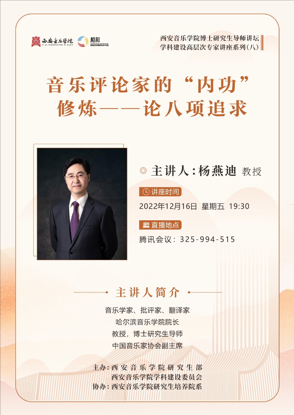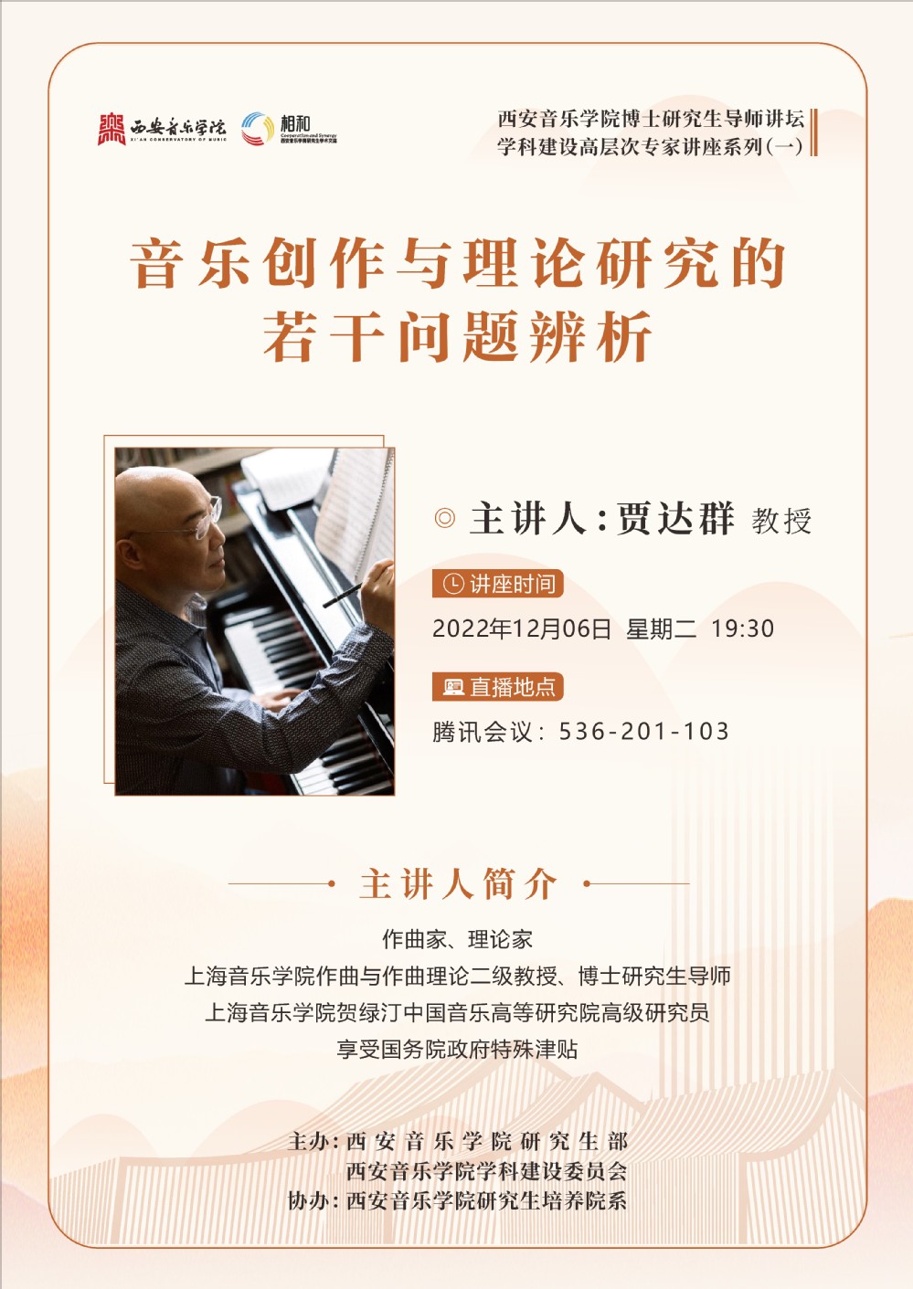 为夯实学科建设基础,提高研究生培养质量,强化师生对学科前沿问题关注探索,由西安音乐学院研究生部、西安音乐学院学科建设委员会主办,研究生培养各院系协办的“西安音乐学院博士研究生导师讲坛暨学科建设高层次专家系列讲座”学术活动将于2022年12月6日拉开帷幕,邀请到我国艺术学研究领域具有重大影响力的权威专家为广大师生带来10余场学术讲座,敬请关注学习。