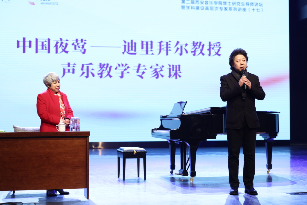 11月20日下午,由西安音乐学院研究生部、西安音乐学院学科建设委员会主办,西安音乐学院研究生各培养院系协办的“第二届西安音乐学院博士研究生导师讲坛暨学科建设高层次专家系列讲座”第十七期“中国夜莺——迪里拜尔教授教授声乐教学专家课”成功举办。
