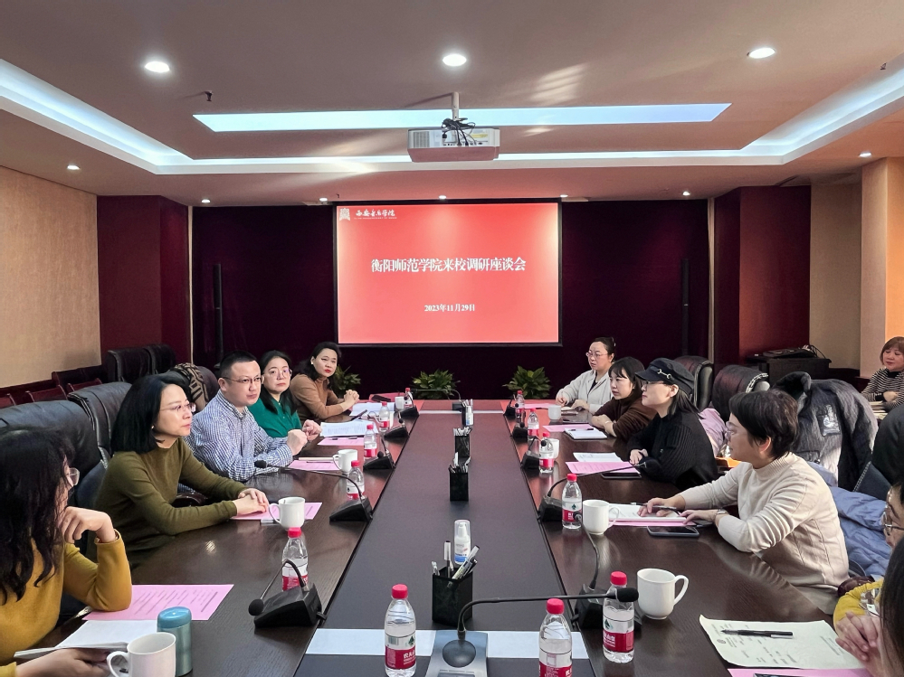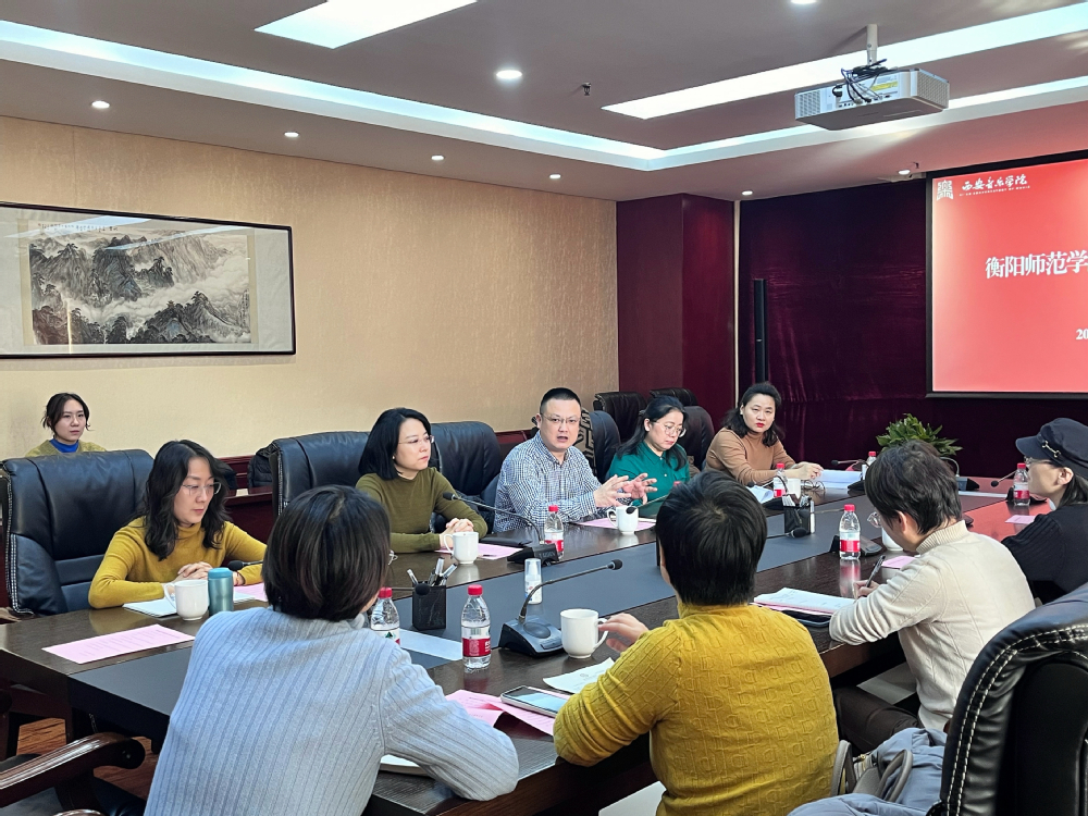 11月29日下午,衡阳师范学院音乐学院党总支副书记邓寒梅一行6人来我校交流访问。我校研究生部党总支书记、研究生部主任郭强,研究生部党总支副书记、研究生部副主任陈卉,音乐教育学院声乐教研部主任樊萍教授,音乐教育学院键盘教研部主任邓婕副教授,民乐系弓弦乐教研室主任张冀文副教授及研究生部全体工作人员参加座谈会。座谈会由陈卉副主任主持。