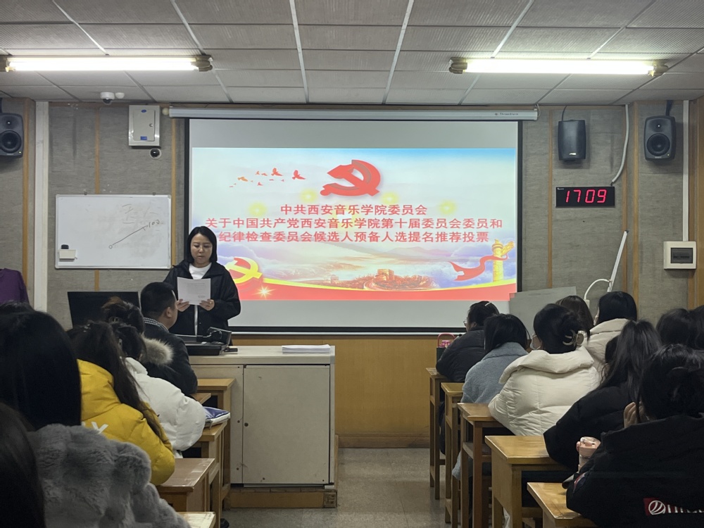 会议传达了学校《关于中国共产党西安音乐学院第十届委员会委员和纪律检查委员会委员候选人预备人选提名推荐工作的通知》文件精神,通报了人选推荐的基本原则和基本条件,强调酝酿推荐工作应按照民主集中制和德才兼备的原则,充分发扬民主。郭强在发言中指出,全体党员要以高度的政治觉悟,遵守组织纪律,服从学校大局,认真行使党员权利,共同做好候选人初步人选推荐工作。提名过程采用差额选举办法,以无记名投票方式,推荐党委委员候选人和纪委委员候选人。