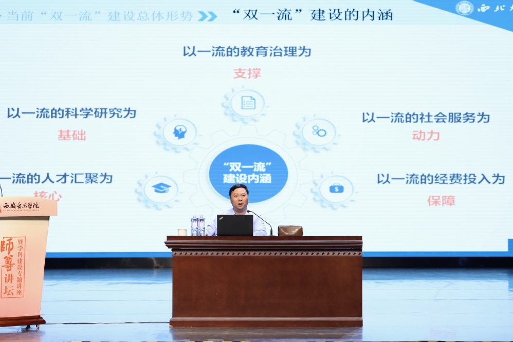 4月18日下午,由学科办、党委教师工作部主办的师尊讲坛暨学科建设专题讲座在艺术中心举办,本场讲座邀请了国家级教学名师,西北大学原副校长,二级教授赖绍聪主讲。院长王刚,校党委副书记、纪委书记易红彬,副院长侯颉、郭强,各单位、各部门全体处级干部、科级干部,各院系教研室主任、副高以上专任教师,学校学位评定委员会委员参加讲座,讲座由侯颉主持。