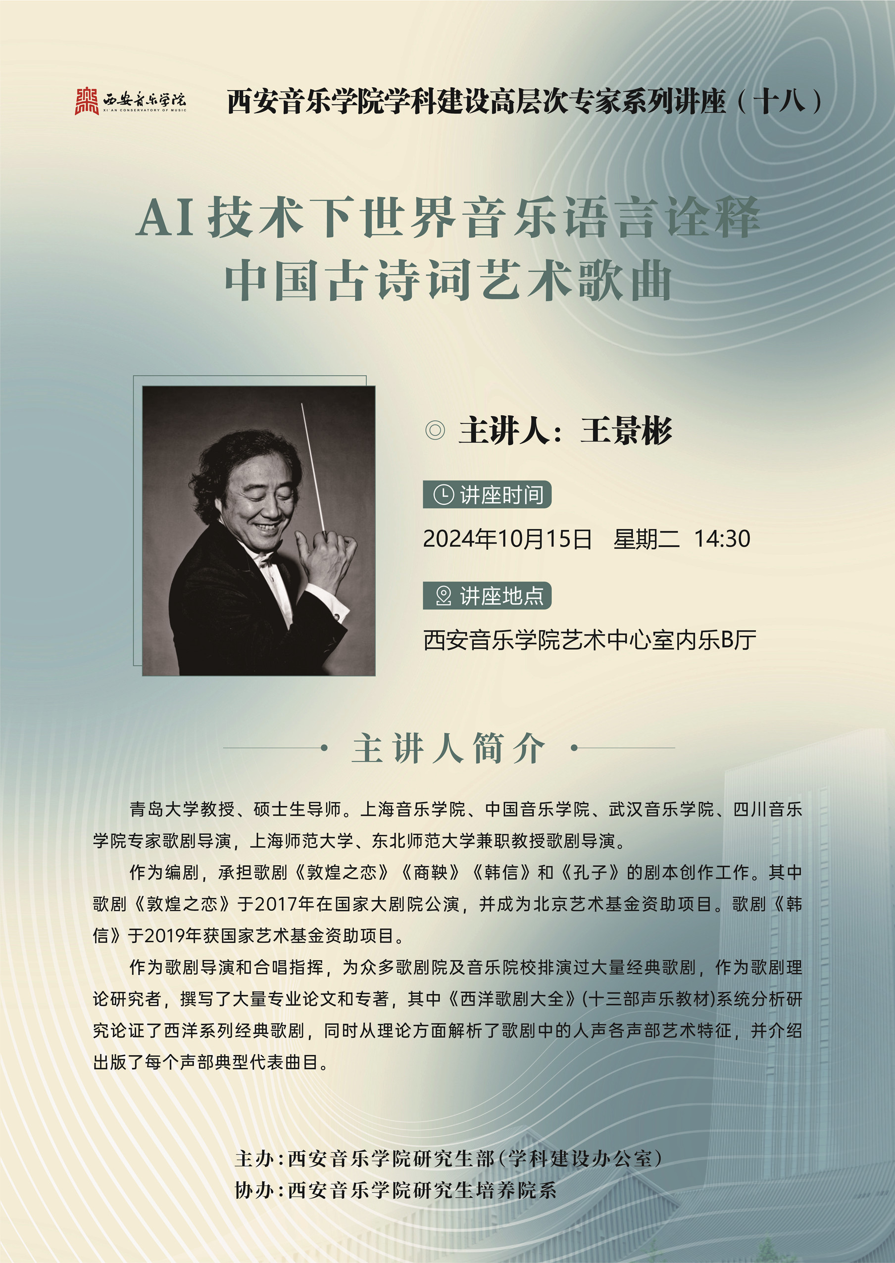 西安音乐学院学科建设高层次专家系列讲座(十八) 王景彬:《AI技术下世界音乐语言诠释中国古诗词艺术歌曲》