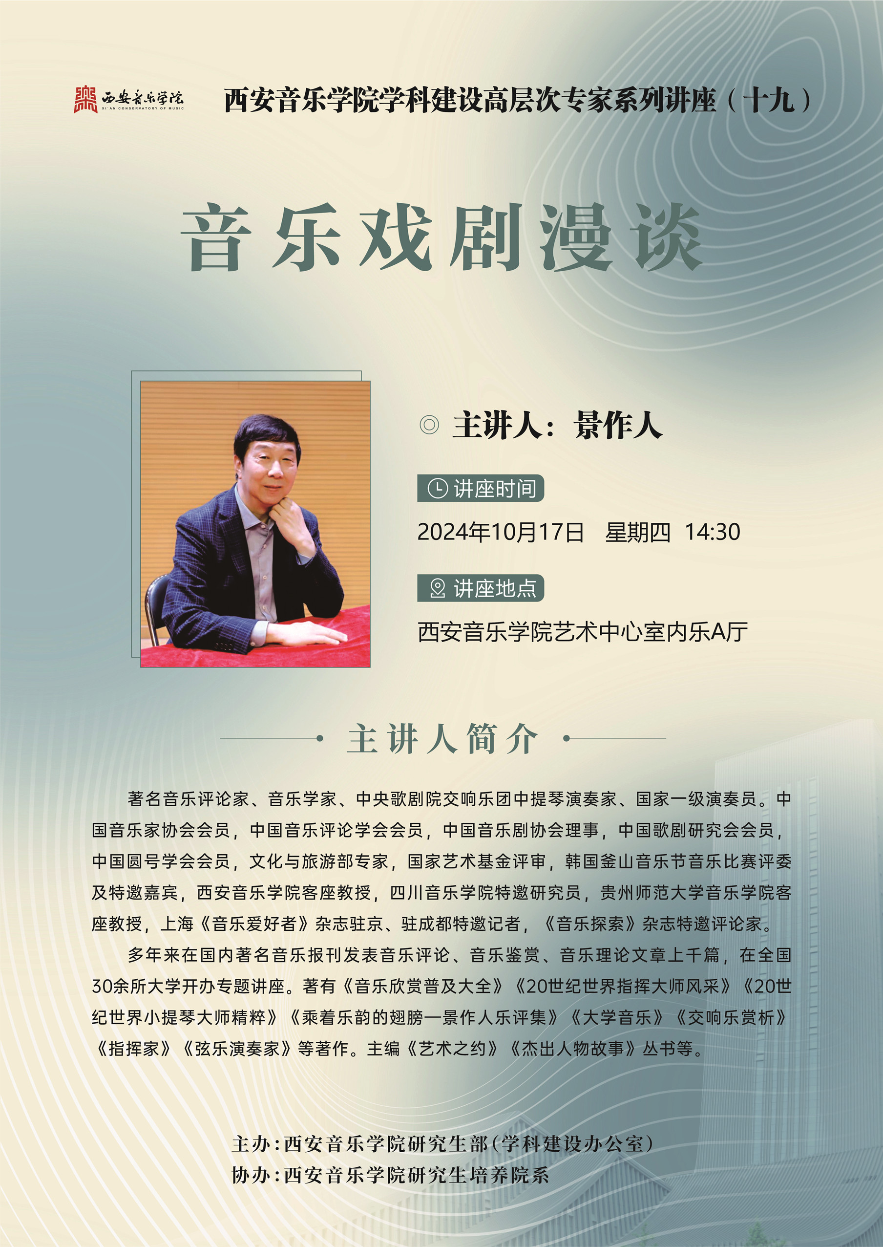 西安音乐学院学科建设高层次专家系列讲座(十九) 景作人:《音乐戏剧漫谈》