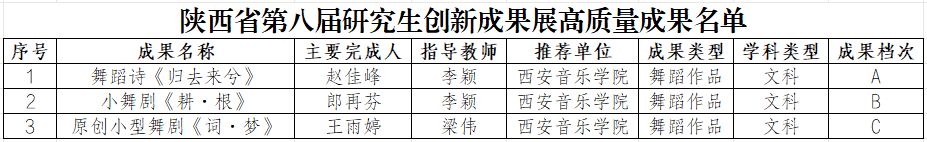 陕西省教育厅公布了陕西省第八届研究生创新成果展高质量成果名单,我校在列高质量成果3项,其中A类成果1项,B类成果1项,C类成果1项。