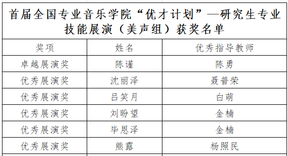 近期,我校研究生教育成果喜获多项荣誉,其中包括:首届全国专业音乐学院“优才计划”研究生专业技能卓越展演奖2项,优秀展演奖8项,优秀指导教师奖9项;陕西省2023年高等教育教学成果奖(研究生教育)1项;陕西省第八届研究生创新成果展高质量成果3项。