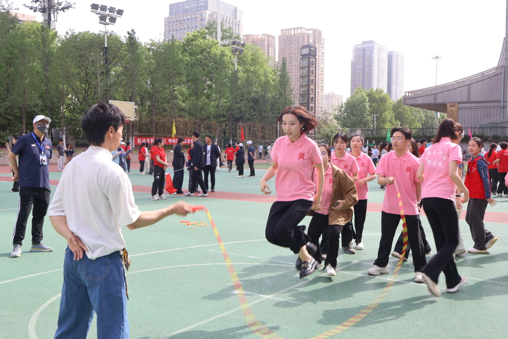 集体项目中,研究生部团队的默契与协作精神更是体现得淋漓尽致。在同心击鼓比赛中,作为该项目校记录的保持团队,研究生部的队员们凝心聚力,大家齐声呼喊、协同发力,凭借精妙的配合与出色的发挥,连续两年获得该项目第一名。在三分钟跳大绳比赛现场,长绳翻飞间,队员们节奏统一、配合流畅,以稳定的发挥拿下大学组第三名。