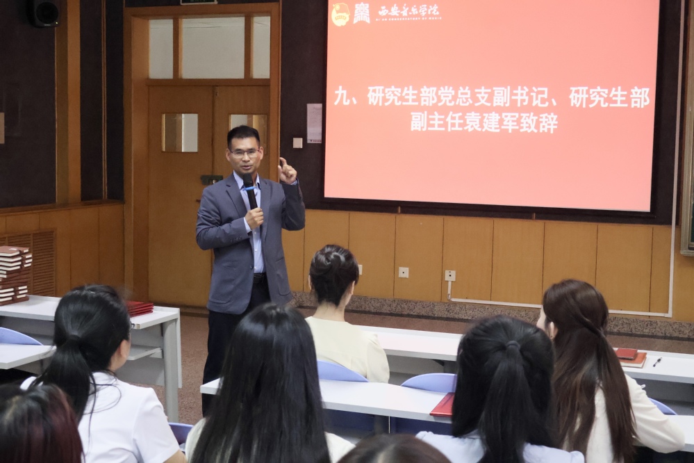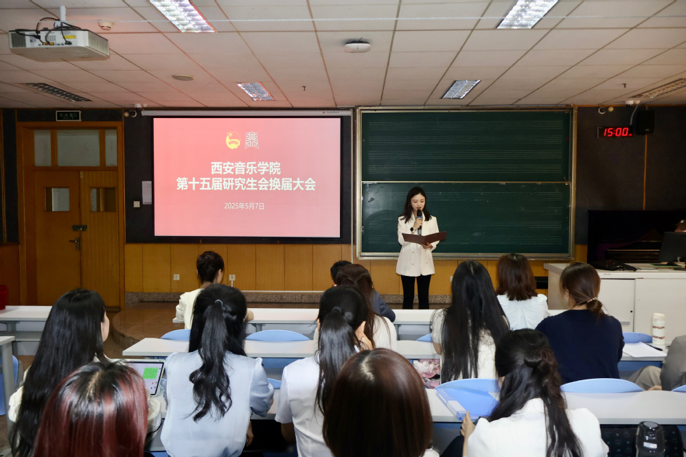 5月7日,西安音乐学院第十五届研究生会换届仪式顺利举行。此次换届仪式旨在完成研究生会新老成员的交替,确保研究生会工作的连续性与稳定性,为学校研究生工作注入新的活力。研究生部党总支副书记、研究生部副主任袁建军出席仪式,研究生会指导教师及研究生会成员参加仪式。
