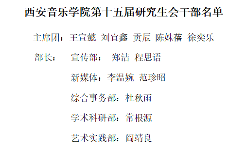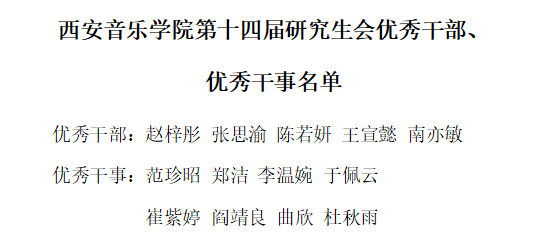 附:西安音乐学院第十四届研究生会优秀干部、优秀干事名单