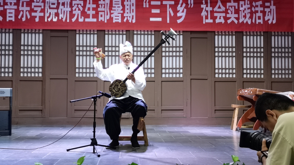 活动首日,西安音乐学院研究生部师生团队走进榆林市榆阳区文化馆,与当地文化馆共同举办了“美育共同体建设协作基地”及“研究生教学实践基地”的挂牌仪式。这一举措标志着校馆合作迈入了新的阶段,双方将在非遗文化研究、美育资源共享、人才联合培养等方面展开深度协作。挂牌仪式后,一场别开生面的联合演出在文化馆内上演。榆林小曲省级非遗传承人梁梅携弟子任彩艳、陈海燕,共同演绎了经典曲目《静兰房》与《张生戏莺莺》,其悠扬的曲调和深情的演唱让现场观众沉醉。同时,优秀陕北说书艺人陈文艺带来的《剃头》,以其一人分饰多角的精湛技艺和浓郁的地方特色,赢得了阵阵掌声。同学们带来的二胡演奏《弦意岭南》、陕北民歌《三十里铺》等节目也展现了专业艺术教育的丰硕成果,校馆演员的默契配合,让非遗文化与专业艺术教育碰撞出了别样的火花。