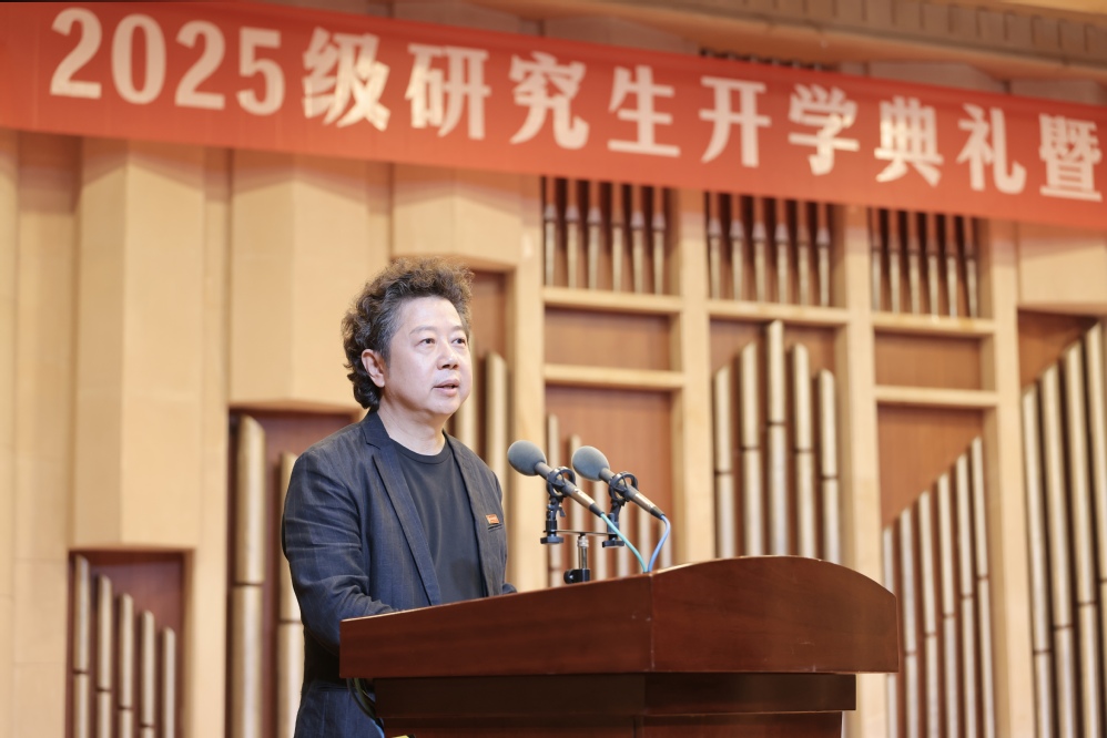2025级新生代表胡嘉芮在发言中表示,研究生阶段是学术探索与身份转变的新起点,需要既有沉潜的定力,也要有创新的锐气。她号召同学们牢记校训“明德教化,乐音至善”,以青春和奋斗勇立潮头,努力成长为有理想、有本领、有担当的新时代青年。