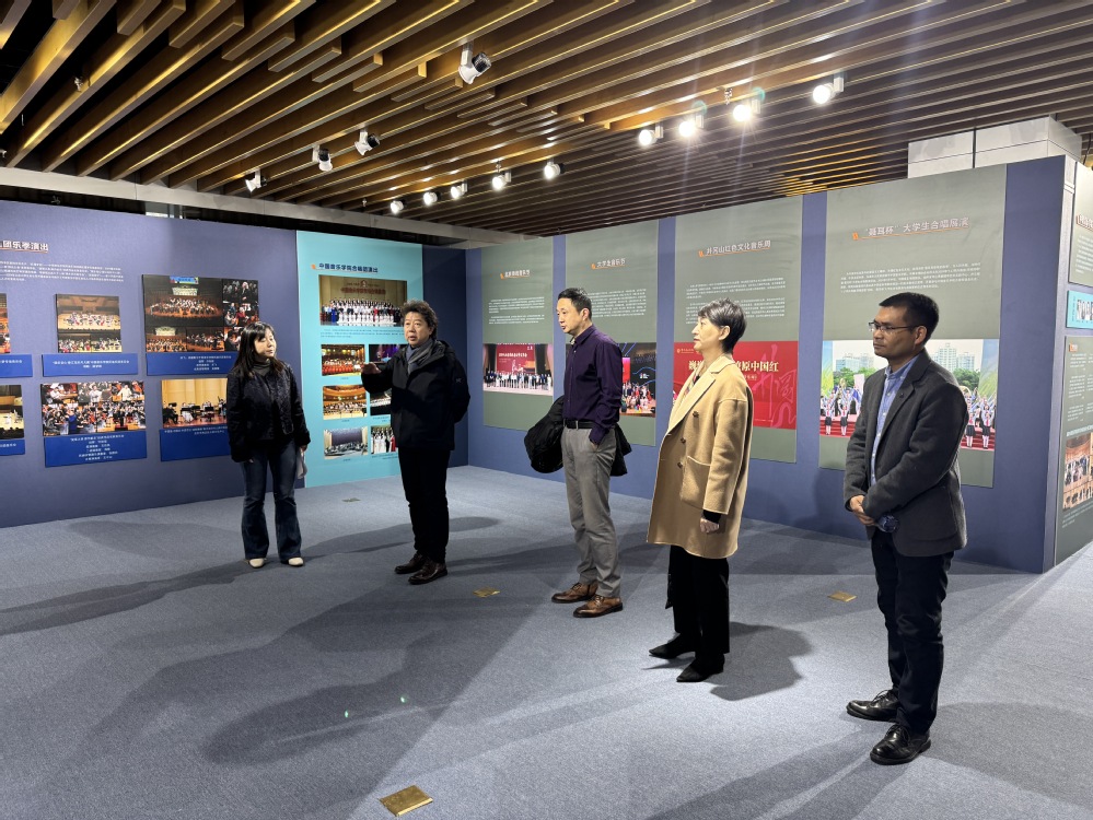 在中国音乐学院,调研组先后观摩了学生排练实践、艺术成果展及校史展,切身感受其办学传统与学术氛围。