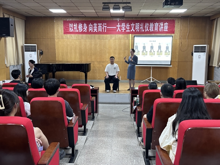 为弘扬中华礼仪文化,提升大学生文明素养,5月21日下午,党委学生工作部邀请陕西省少年儿童文化研究会礼仪文化教育专委会副主任齐颖倩老师,在三号教学楼一楼演奏厅为我校学生举办了“礼驻我心,仪助我行”大学生文明礼仪教育专题讲座。本次讲座涵盖形象提升、往来礼仪应用、沟通礼仪等三个方面的知识。通过专业的讲解和生动的案例,引导同学们深入理解礼仪文化的内涵,并将礼仪知识内化为个人修养,外化为日常行为。在场同学表示通过聆听讲座,不仅学到了如何塑造良好的个人形象,还掌握了在不同场合下如何恰当地运用礼仪知识,以及在沟通中如何保持礼貌、尊重他人,为未来步入社会打下了坚实的基础。