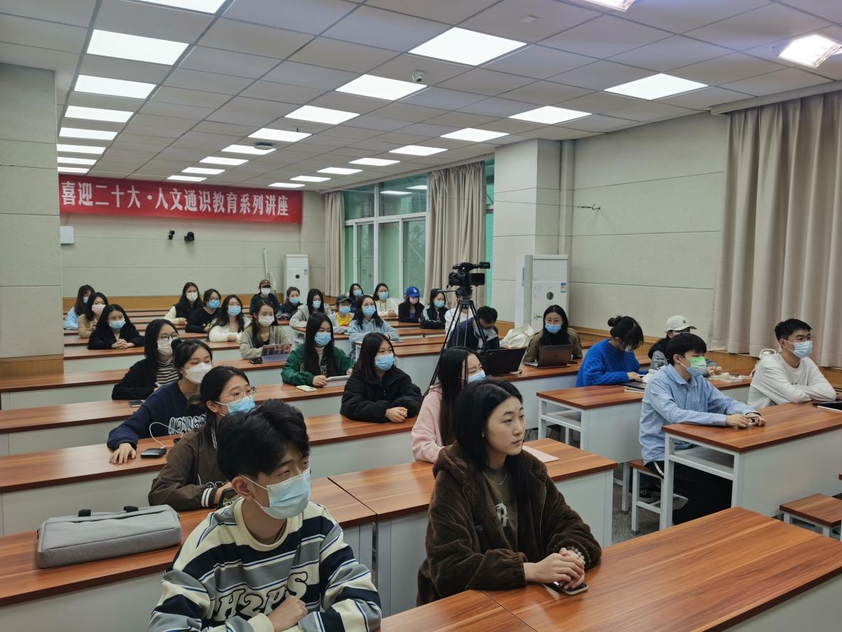 10月20日下午,“献礼二十大·人文通识教育系列讲座”第四讲《“和而不同,立命安身”——传统文化精神对话大学生活》在4号楼203多媒体教室开讲。人文学院副院长宁颖主持讲座,新入职教师车婧博士担任主讲。