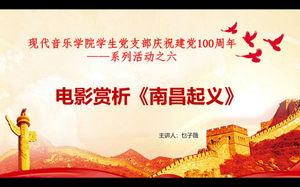 在迎接中国共产党百年华诞之际,现代音乐学院学生党支部组织全体学生党员开展第六期经典党史电影赏析活动,带领同学们了解影片背后的历史故事及英雄人物。