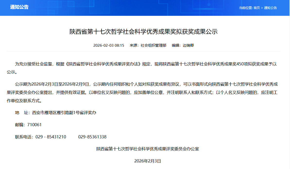 喜报!我校三项成果获陕西省第十七次哲学社会科学优秀成果一等奖
